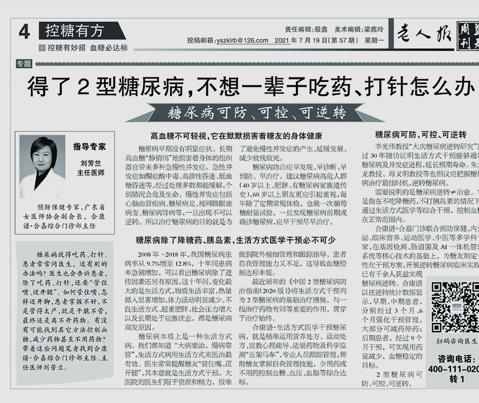 通过糖尿病逆转,可恢复组织器官功能,改变糖友长期以来的“病态”生活